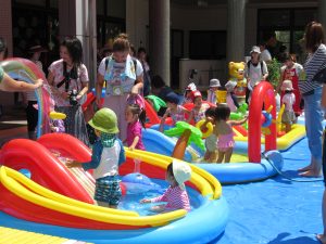 ※設置するプールは低年齢児対象のもので、遊ぶ子どもも2歳児です。安全面も考慮して、大きいお兄ちゃん・お姉ちゃんは一緒に入れませんので、ご了承下さい。別のところにプールを設置しますので、そちらで遊ぶことになります。