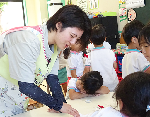 一人ひとりの子どもたちが小さな一歩を踏み出し、自分でできることが増えていく姿に、先生として大きなやりがいを感じています。お友だちを思いやる気持ちや相手の立場に立って考える姿も少しずつ見られるようになり、心の成長を感じる毎日です。日々変化しながら成長していく子どもたちの姿が、何よりの励みになっています。
